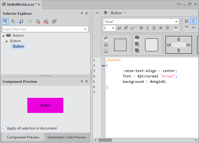 After writing the style code for the .Button selector as above, save the HelloWorld.xcss file.