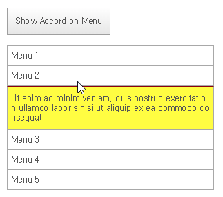 Clicking the button displays the default menu title, and clicking the menu title displays the detailed description.