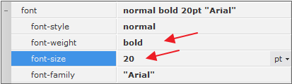 fs (font-size) fc (color) ff (font-family) b (bold) i (italic) u (underline) s (strike)
