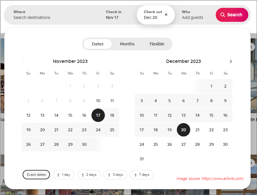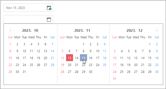A booking service for travelers might want to display two calendars at the same time for the user to select the check-in and check-out dates without having to manipulate the calendars.