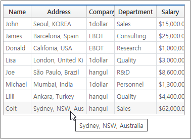In Displaying with Tooltip for Long Text Length, all specific columns were displayed with the tooltip. Here, let us take a look at how to display them with the tooltip only when necessary, according to the actual text length.