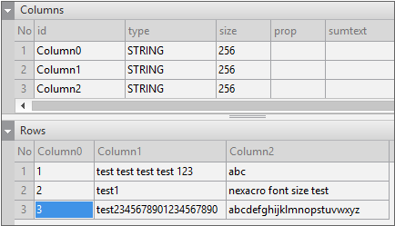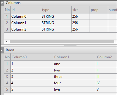 Enter the data item list in the created Dataset. If you double-click Dataset00 in the Invisible Objects area, then the Dataset editor appears. Enter columns and rows as shown in the figure below.