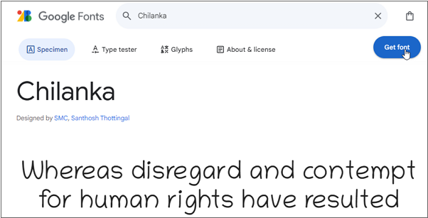폰트 목록에서 원하는 항목을 선택하고 [Get font] 버튼을 클릭합니다.