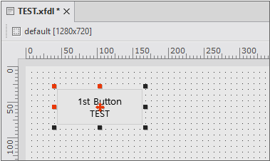 텍스트 입력 후 다른 속성 항목으로 이동하거나 디자인 화면으로 포커스를 옮기면 Button 컴포넌트의 텍스트가 변경된 것을 확인할 수 있습니다.