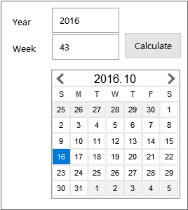 DatePickerControl은 두 부분으로 나눌 수 있습니다. 년도와 월을 표시하며 버튼을 가지고 있는 head, 요일과 날짜를 표시하는 body. 그리고 body는 다시 요일을 표시하는 weekband와 각각의 dayitem으로 구성됩니다.아래 코드에서는 head, weekband 영역의 배경색을 바꾸었고 body 영역의 테두리선을 보이지 않게 했으며, 토요일과 일요일을 다른 날과 같은 색으로 표시하도록 했습니다.