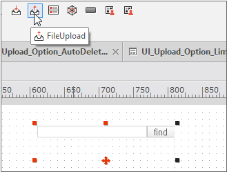툴바에서 FileUpTransfer를 선택하고 화면에 추가합니다. FileUpTransfer는 Invisible Object 영역에 표시됩니다.