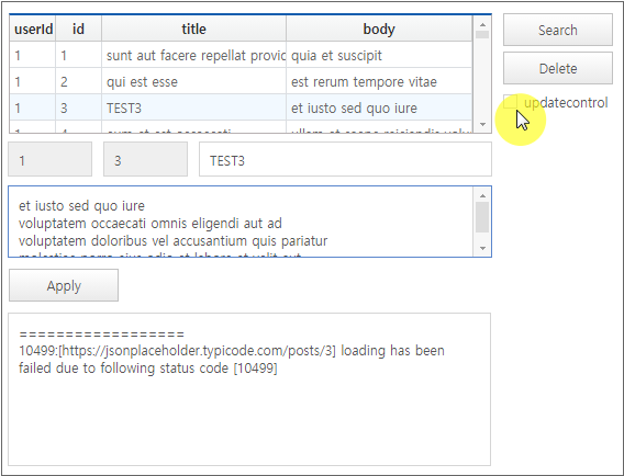 [Apply] 버튼을 클릭하면 변경된 데이터를 처리합니다.