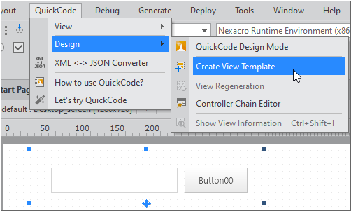 With the View component selected, select the menu [QuickCode > Design > Create View Template] item.