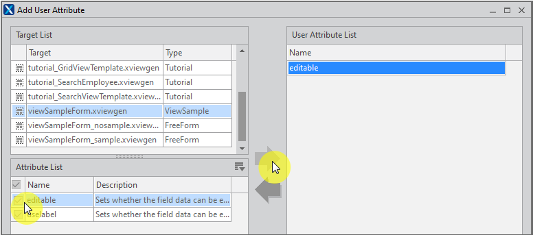 Click the right arrow button to add the selected User Attribute item to the User Attribute List area.