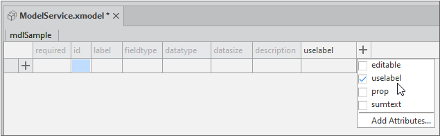 Click the [+] button at the right end of the Model setting screen and check the 'Add Attributes' item from the expanded list.