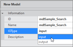 Select [Paste] from the context menu to create and save a new Model item. Then, edit the id, iotype, and name in the properties window and save.