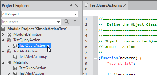 Double-click the Action object MetaInfo item to be edited in Project Explorer or select the [Edit] item from the context menu.
