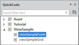 When creating a project, if you check the 'Use QuickCode' item and select 'Install > Sample', the view template used for the tutorial is copied to the viewtemplate folder. You can check the script by double-clicking the View template item. The example does not use the sample View template, but creates a new View template.
