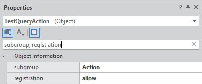 For the TestQueryAction object, add two properties as shown below.
