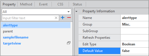 The parent, targetview properties are the default properties of nexacro.Action and are displayed as default values in meta-info when creating the Action object. Select the targetview item and then modify the information in the property window.