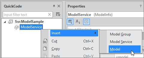 Right-click the Model Service item to launch the context menu and select [Insert > Model] to launch the Model Wizard.
