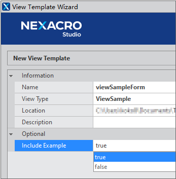 If you do not want to add an example code in the form of a comment that can be referenced when creating a View Template, change the 'Include Example' item value to false. If true is selected, a View Template is created with example code as shown below.