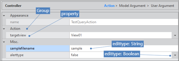 You can specify the group name shown in Controller Wizard. This is auxiliary information that is provided so that the user can easily recognize the property.