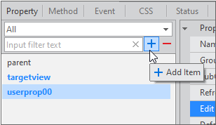 Click the [+] button in the [Property] tab to add the property of the Action object.