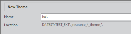 The 'Location' value is auto-populated based on the project path and cannot be changed. The 'Name' value cannot be created when there is a Theme with the same name in the path to be created.