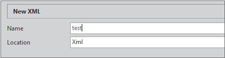 You must enter an XML file's "Name" and "Location." Moreover, XML files in the same location must have unique names.