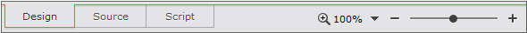 In this tab, you can design components, edit their properties and bind Datasets to them. You can zoom a current form by adjusting the zoom bar on the bottom-right side of the pane.