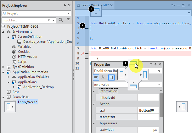 The most basic tasks you can do through Nexacro Studio constitute drawing a Form and writing codes to program how the Form works. To facilitate such tasks, the Studio offers various features including the clear-cut provision of the information on the properties held by the components on a Form.