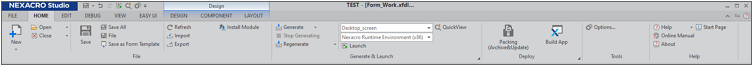 All the windows of Nexacro Studio can be rearranged or hidden, except the title bar and Form Design pane.