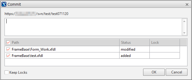 If you do not write a commit message, you cannot proceed with the commit because the OK button will not be activated. Therefore, write a message explaining the changes you made.