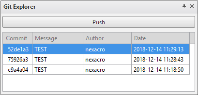 When a remote repository is connected, you can push the commits saved in your local repository by performing the push operation. To that end, go to the menu [Git > Push] or click the Push button in the Git Explorer.