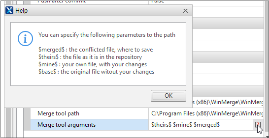 If you click the [?] button at the end of the User execute file path option, you can see the information that helps you install the Subversion client.