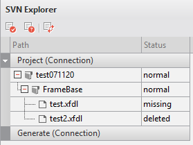 Sometimes, you cannot control the files in the Generate division from the Project Division because the files on both sides are in different states. In this case, you should go to the Generate division of the Git Explorer and control files by yourself.