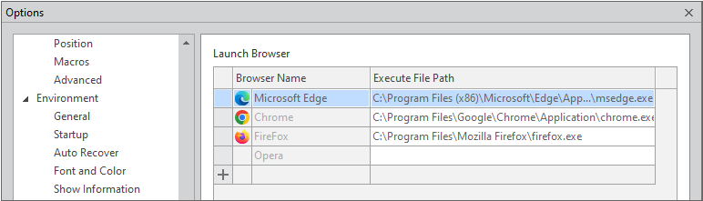 You can designate web browsers to which you connect your applications when initiating Launch or Quick View.