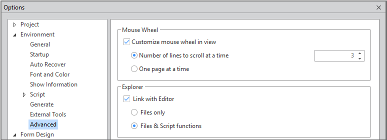 Determines what types of file contents are displayed in the Project Explorer by parsing the components and scripts included in XFDL, XJS and JS files. This option is applied when a project is opened.