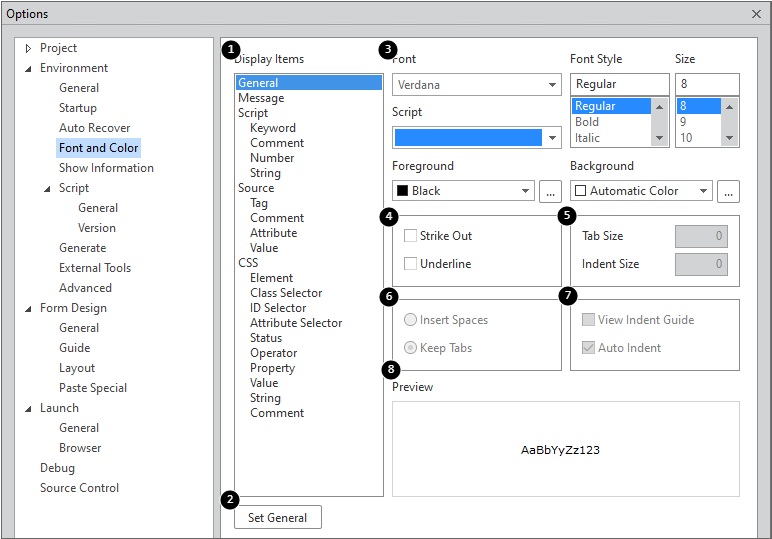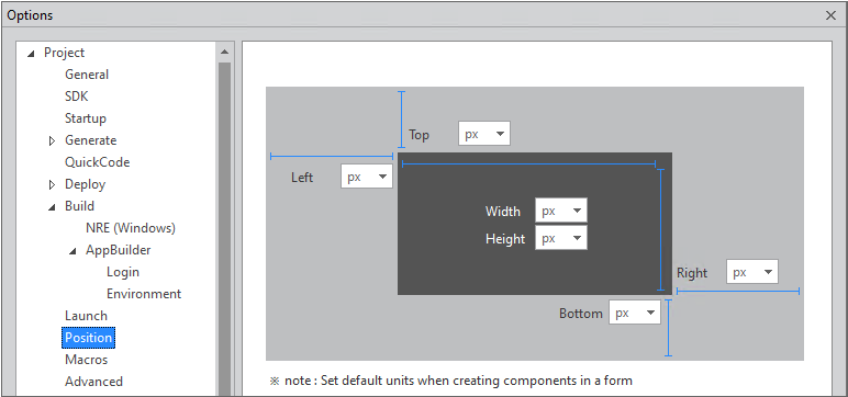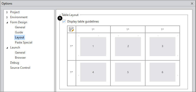 You can set up the options for the Form design editor, including Ruler, Guide Line, Grid, and Snap