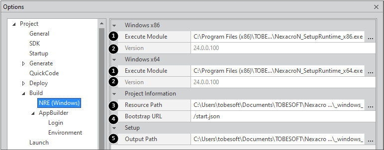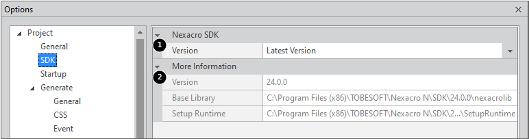 - Setup Runtime: Set the Setup Runtime folder for the selected SDK.