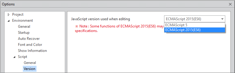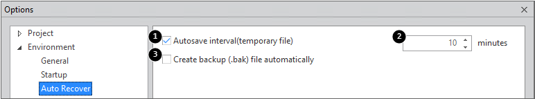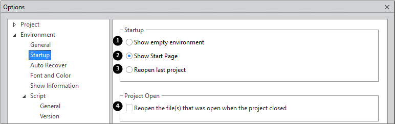 Project-related options are visible only while a project is opened. The option values are managed separately according to projects.