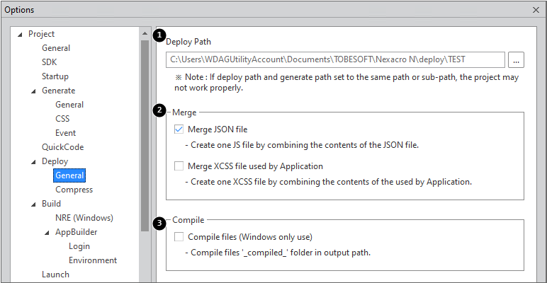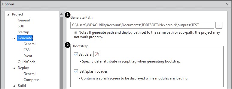 Specifies the path for saving the files that are produced as the result of building a project. If the Generate path is equal to or located under the Deploy path, the project may not work properly.