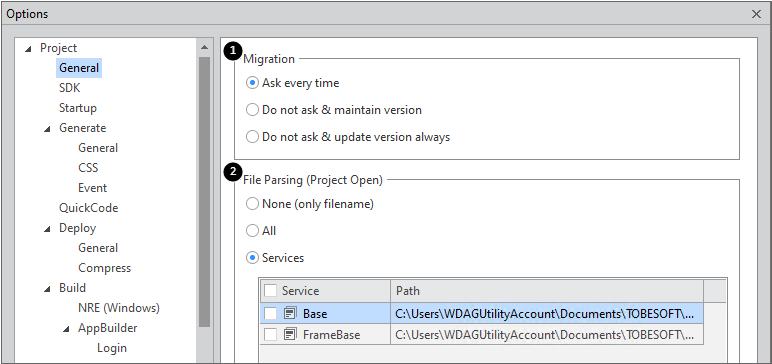 Sets the migration option for file versions lower than Nexacro Studio can support