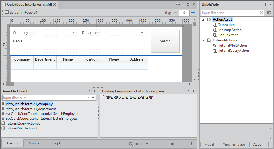 QuickCode Tutorial Wizard 실행 결과로 생성되는 파일이며 QuickView 실행 후 [Search] 버튼 클릭 시 데이터를 조회할 수 있습니다.