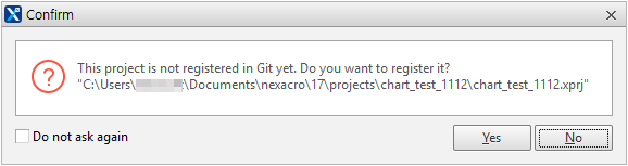 로컬 저장소에 관리되고 있지 않은 프로젝트를 열면 등록할지 여부를 확인합니다. [Yes] 버튼을 클릭하면 해당 프로젝트에 대해 "Init New Repository" 명령을 실행합니다. [No] 버튼을 클릭하더라도 메뉴[Git > Init New Repository]를 선택해 프로젝트를 등록할 수 있습니다.