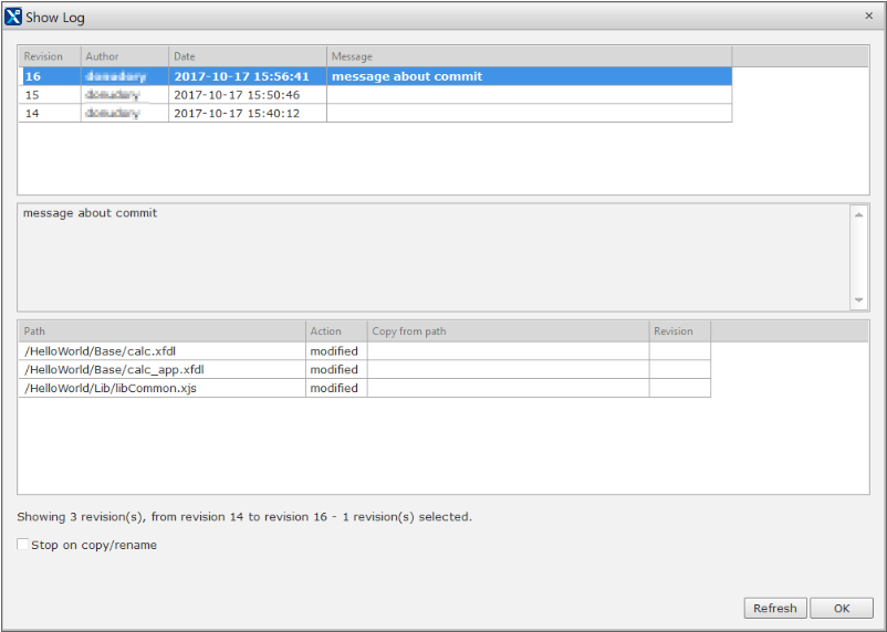 항목을 더블클릭하거나 컨텍스트 메뉴에서 [Show Commit] 항목을 선택하면 Commit 정보 창을 표시합니다.