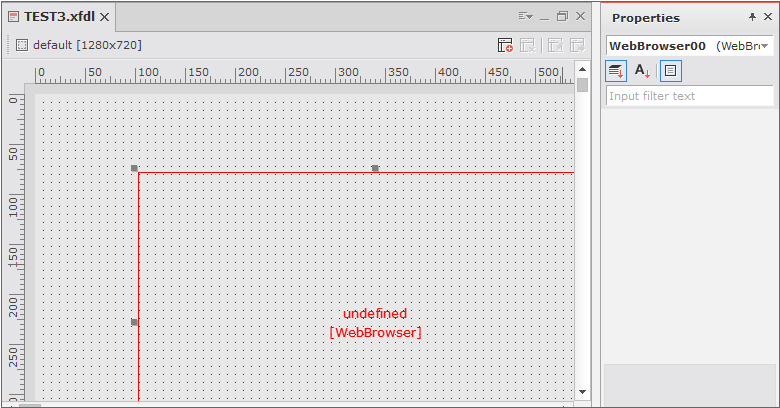 화면에 표시되는 컴포넌트인 경우에는 "undefined"라는 문구와 함께 컴포넌트명이 붉은색으로 표시됩니다. 이때 컴포넌트를 선택할 수 있지만 관련 속성을 보여주지 않고 크기를 변경할 수 없습니다.