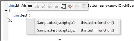 메뉴에서 해당 기능을 선택하면 연결된 함수 위치로 이동하거나 include 한 스크립트 내에 있는 함수인 경우에는 해당 파일을 열고 해당 위치로 이동합니다. 혹 같은 이름의 함수가 중복되어 발견된 경우에는 해당 함수를 정의한 파일 목록을 표시합니다.