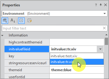 설정한 InitValue를 적용하려면 먼저 Environment 속성 중 initvaluefileid 속성값을 지정합니다.