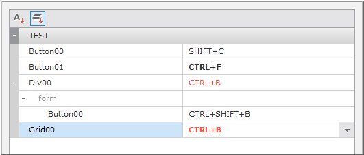 화면에 설정된 컴포넌트의 Hotkey 속성을 지정하는 기능입니다. 메뉴[Design > Hotkey Editor]를 선택하고 해당 기능을 사용할 수 있습니다. 이미 설정된 Hotkey 속성값이 표시되며, 설정된 값이 없다면 공란으로 표시됩니다. Hotkey값을 변경하게 되면 굵은 글꼴로 표시되며, 같은 Hotkey값이 설정된 경우 빨간색으로 표시됩니다.