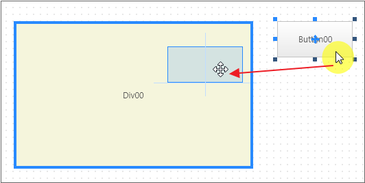 선택한 컴포넌트를 컨테이너 컴포넌트 영역 안으로 드래그앤드롭하면 파란색 경계선이 표시되고 컨테이너 컴포넌트의 자식으로 추가됩니다.
