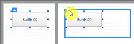"▲" 클릭 시 상위 컴포넌트를 선택한 상태로 전환됩니다. Div, PopupDiv, View, Panel 컴포넌트인 경우에는 컴포넌트를 이동하거나 컨텍스트 메뉴를 실행하기 위한 UI를 제공합니다.