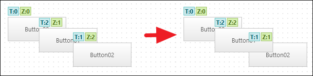 Tab Order Editor에서 탭 순서 변경 후 탭 순서에 따라 Z-Order를 변경하고자 할 경우에는 메뉴[Design > Arrange to Tab Order] 항목을 선택해서 Z-Order를 변경할 수 있습니다.