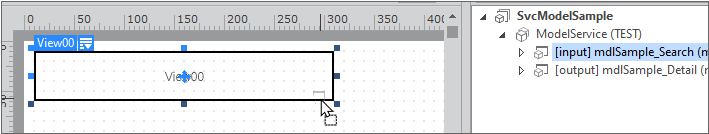 Model(mdlSample_Search)을 마우스로 드래그해서 View 컴포넌트 위로 이동하면 검은색으로 View 컴포넌트의 영역을 표시해줍니다.
